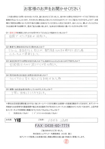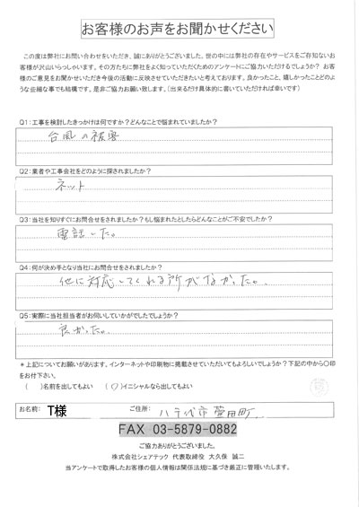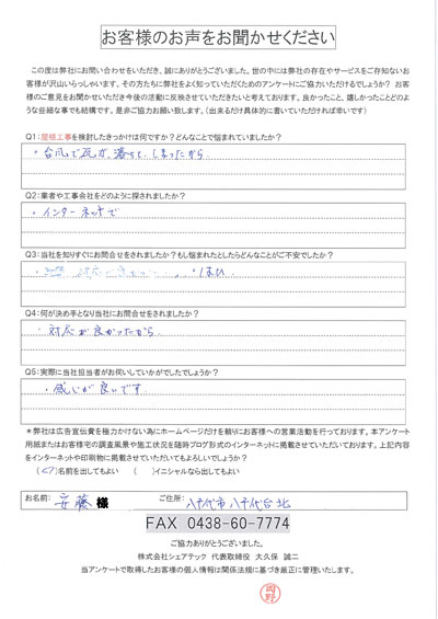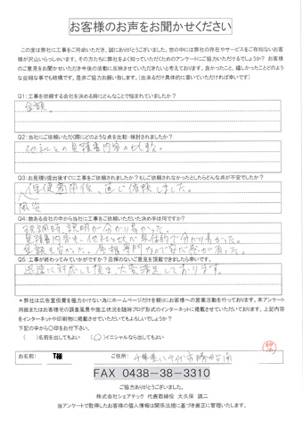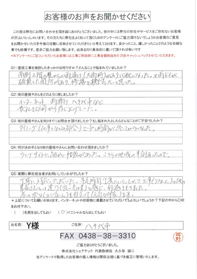 八千代市で屋根工事を行ったお客様の声一覧