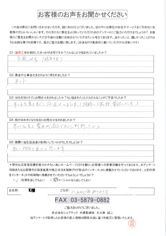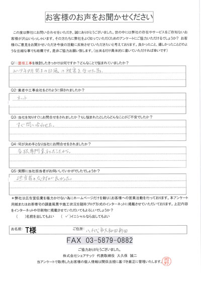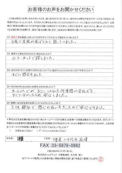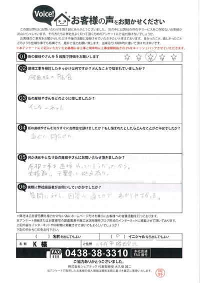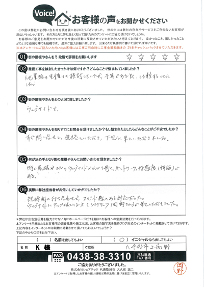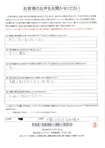 八千代市で屋根工事を行ったお客様の声