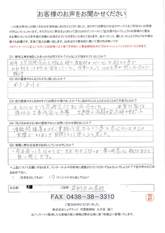 千葉市花見川区で屋根工事を行ったお客様の声