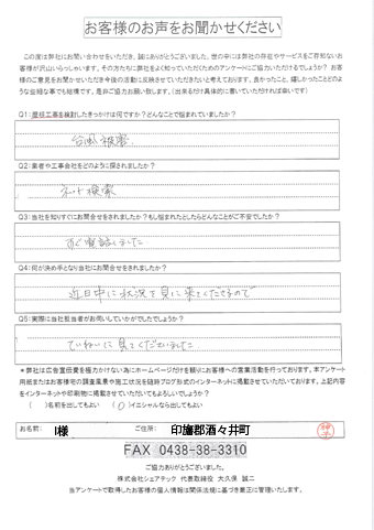 印旛郡酒々井町で屋根工事を行ったお客様の声