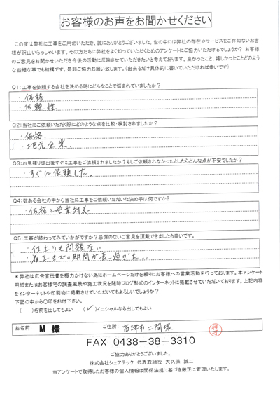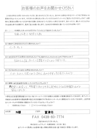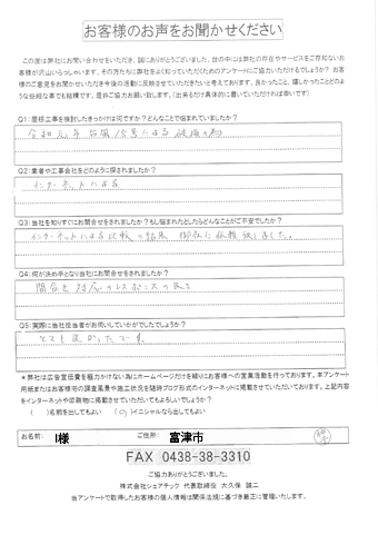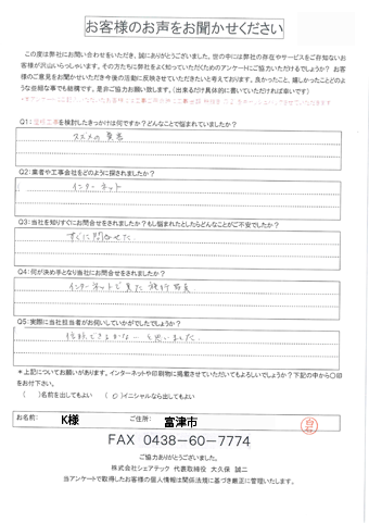また、富津市で工事を実際に行ったお客様からのご感想やご意見も掲載しておりますのでご覧ください。