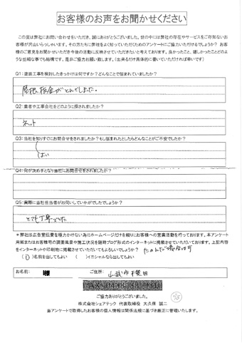 インターネットで見つけた会社なので正直半信半疑だったそうですが、連絡をして見るととても感じの良い電話対応で驚かれたそうです。