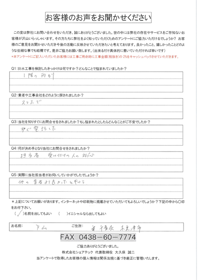 PCのホームページの施工動画を見たり、営業の谷様の誠実な態度など、とても好感がもてて決めました。