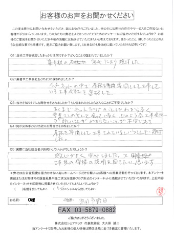 屋根塗装・外壁塗装をご依頼いただいた杉並区のO様より、竣工後の感想を伺いました。