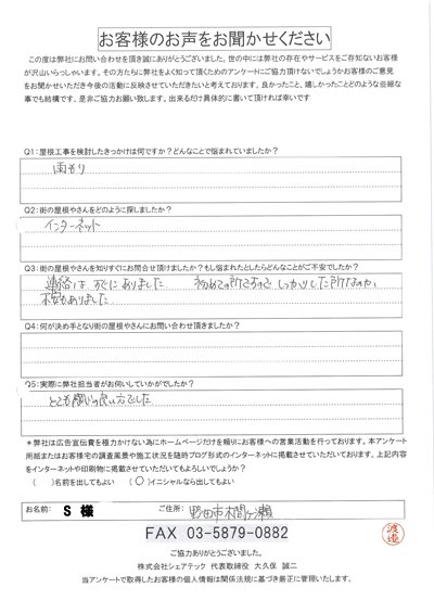 野田市で屋根工事を行ったお客様の声