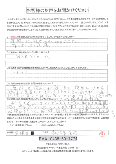また、実際に街の屋根やさんで工事を行った銚子市のお客様からの感想やご意見も掲載しておりますので参考にしてみてください。