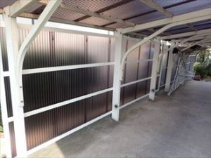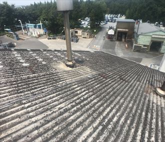 破風板・軒天部分補修 工場・倉庫などの屋根リフォーム 足場 倉庫 千葉県君津市