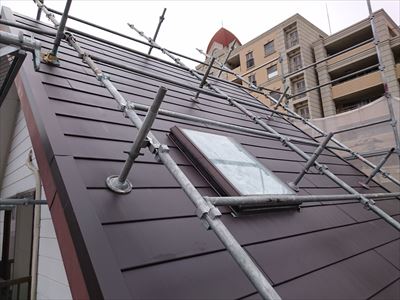 屋根カバー工事 屋根カバー工法 破風板板金巻き工事 足場 千葉県市川市