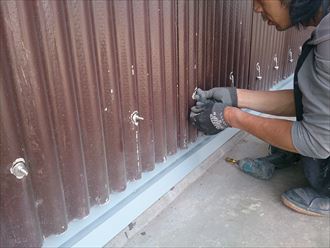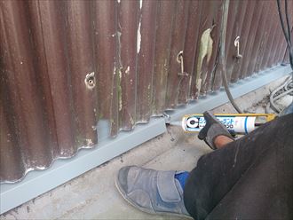 千葉市|小波スレートの壁と土台の隙間の雨吹き込み対策