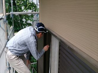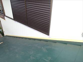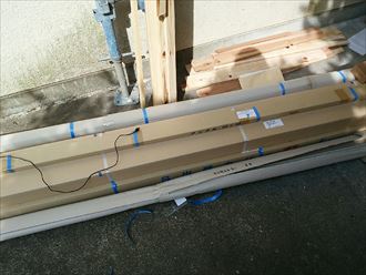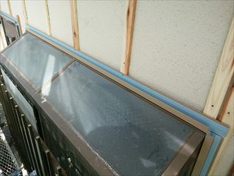 外壁カバー工事はまず下地となる胴縁を建物全体に設置いたします。その次に行われるのがサッシ廻りに水切りを取り付けます。