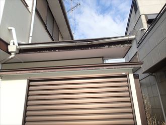 雨樋も今回の工事では全交換を行いました。破風巻板金を行うにあたって一度既存の樋は取り外しを行います。全体がリニューアルされる今回の工事のようなケースは合わせて雨樋も交換されることをお勧めいたします!