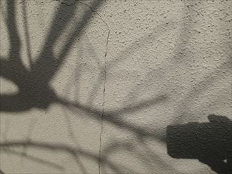外壁はモルタル仕上げとなっていますが、性質上クラック(ひび割れ)がつきものです。ヘアークラックよりは太めのクラックも見受けられました。