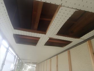 今回の工事のメイン工事の1つでもあります、破風板板金巻工事を行いました。無くなってしまっている破風板の作成をして板金が巻ける状態に修復です。一部は垂木の補修も行っています!