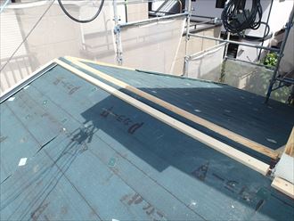 棟包みの板金を収める部分やケラバ水切りのところには👆写真のように下地の木材を取り付けていきます。