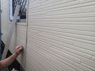 仕上げの壁との取り合い部分のシール作業です。ここはどうしてもコーキングによる作業となってしまいます。