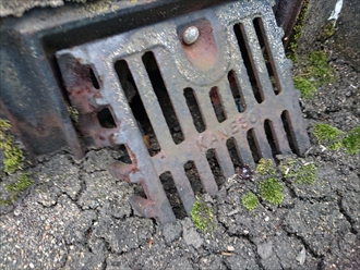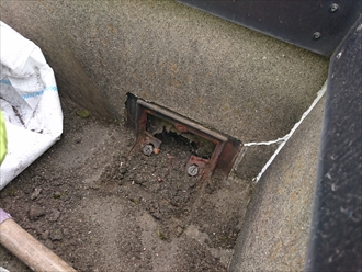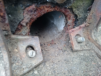 排水口の回りには砂が集まってしまうので、他の床よりも大量の砂がありました。砂を取り除くとサビてしまった金属製のドレンが出てきました。