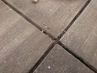古い目地材も取り除き、隙間に詰まった砂を掃除します。この目地がある事で床のモルタルにヒビが入らない状態を保てるようになります。