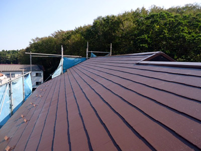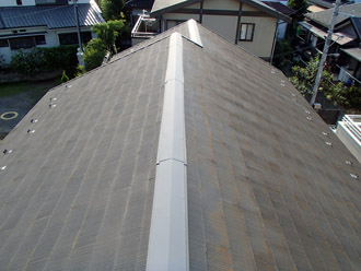棟板金交換完成です!しっかりとビスで止めましたので、これで安心です。