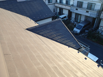 屋根の勾配がきついと雨水が屋根の表面をスムーズに流れますので、比較的劣化の進行は遅くなります。