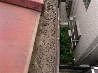 雨樋は完全に脱落している部分もあり、下がっている部分には土が溜まっていました。