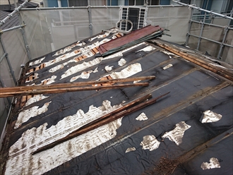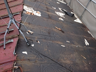 トタンを剥がすと一緒にルーフィングも剥がれてしまいます。