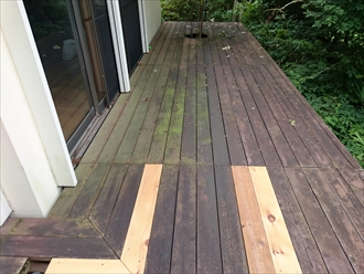 黒ずんだりコケが付着していたウッドデッキが見違える様に綺麗になりました。