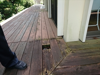 ウッドデッキはその名の通り木で出来た床で、屋根を付けていないので常に雨ざらしの状態になっています(>_<)