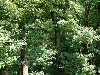 ウッドデッキのある場所の目の前は公園になっていて、木が生い茂っています。