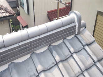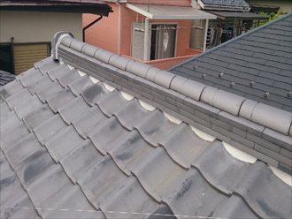 下地の防水紙や瓦桟も全く問題が無く棟瓦のズレも有りませんでしたので、今現在傷みの出ている棟瓦の漆喰工事のみのご提案をさせて頂きました!
