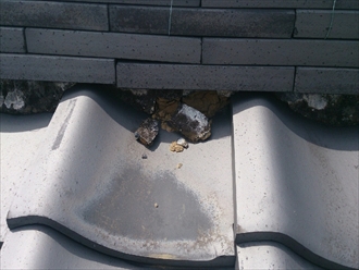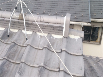 心配になってお問い合わせを頂いたのですが、屋根に上ってみてみたら、漆喰の傷みは出ていましたが、他には全く問題が有りませんでした。