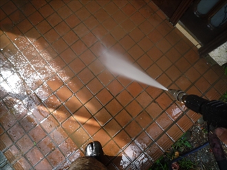 塗装工事の一番最初は、汚れや傷んだ塗膜を落す高圧洗浄です!