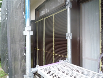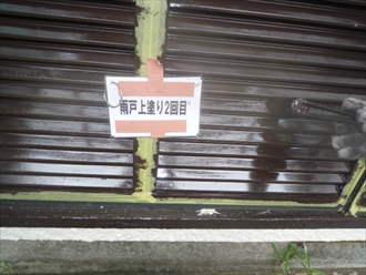 中塗りの乾燥の間に、雨戸の塗装を行います。