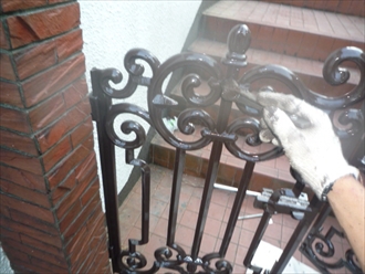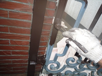 全体的に茶系の色合いで統一するためにも、門扉を塗装しました。
