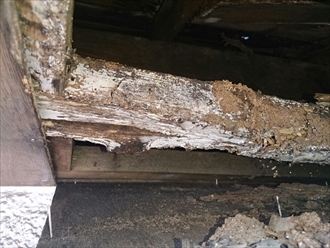 軒裏を覗いてみると、下地の材木が腐っていました。