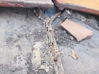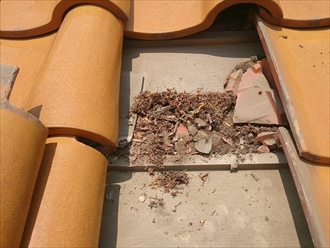屋根全体にあって、最初に瓦を葺いた際に梱包材を下に隠して瓦を葺いていた様です。