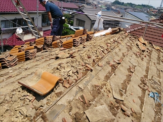 屋根の葺き替え工事の場合、まず始めるのが屋根材の撤去からです。