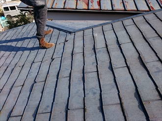 屋根の上を歩くと下地の野地板が傷んでいる様で、ブカブカとして抜けそうな所もありました。