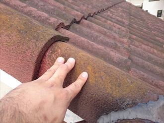 既存のモニエル瓦の表面にあるスラリー層を除去する事が必須です。