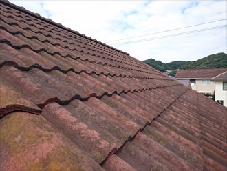 割れなどの傷みは出ていませんので葺き替えを多なう必要も無く、塗装工事のご提案をしました(^^)/