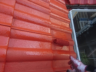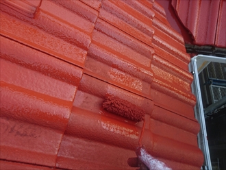 ハイルーフマイルドは二回塗って仕上げますが、一回目は吸い込みがあるので塗りムラが出ない様に丁寧に塗装します。