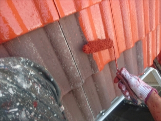 モニエル瓦はそのままだと撥水性が全くありませんので、ハイルーフマイルドで表面を保護します。