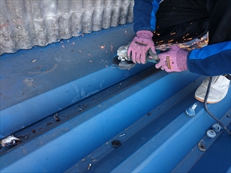 今回は上からガルバリウム鋼板で加工したものを被せるので、出っ張ったボルトなどをカットして出っ張りを無くします。