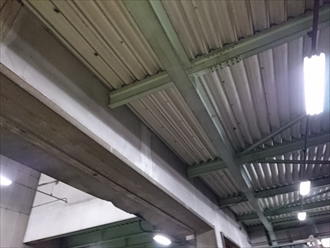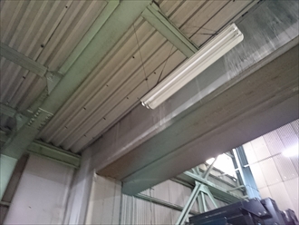 天井部分には、山と谷で作られた『折板(せっぱん)』という金属屋根の裏側が見えています。