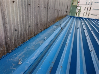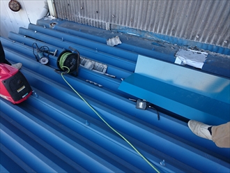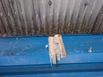 雨が降るたびに雨漏りしている訳ではありませんが、横から吹き付ける様な降り方の時には必ず倉庫内へ雨漏りしていて大変お困りになっていました。