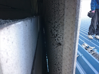 出来れば屋根材と外壁材がこの様にピタッとくっつかない様な納まりにしてあげると、雨水が溜まる事を防げますし毛細管現象で雨水を吸い上げてしまう事も防ぐ事が出来ます。