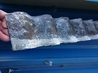 剥がした小波スレートは真っ黒になっていて、カビが生えているのがわかります。