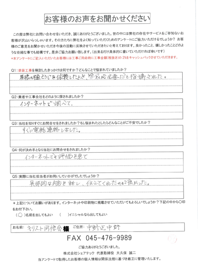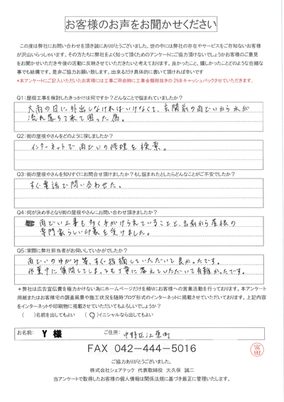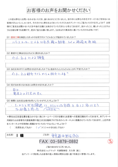 中野区で屋根工事を行ったお客様の声