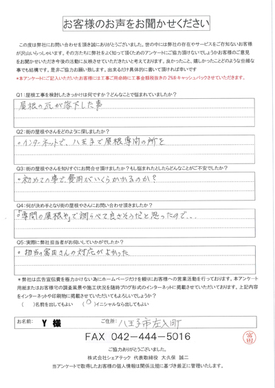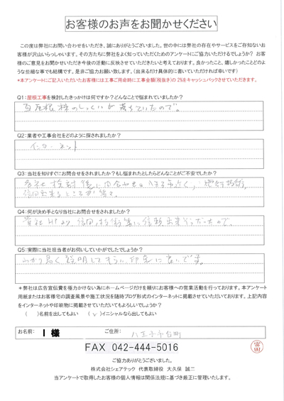 八王子市で屋根工事を行ったお客様の声