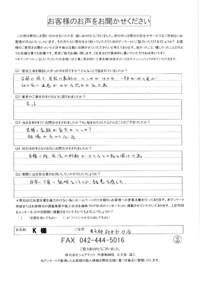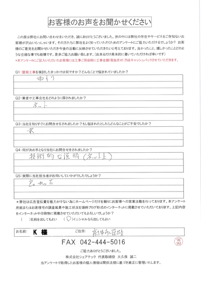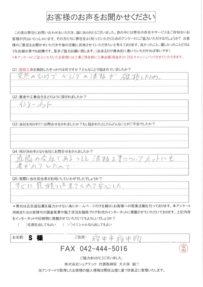 府中市で屋根工事を行ったお客様の声