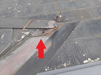 また、雨押え部分に設置されているのし瓦に大きなズレ、板金との取り合い部に隙間が生じていたことからここからの吹込みと推測出来ました